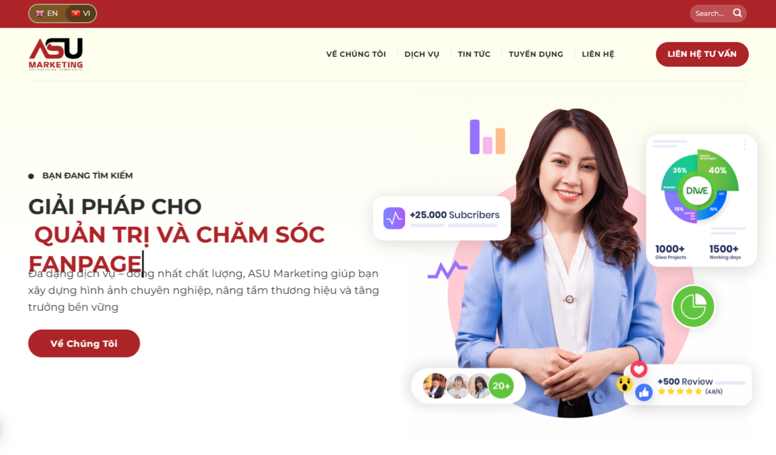 ASU Marketing là đơn vị cung cấp giải pháp marketing tổng thể cho doanh nghiệp, tập trung vào các dịch vụ digital marketing, xây dựng thương hiệu và phát triển kênh bán hàng trực tuyến. Website giới thiệu chi tiết các dịch vụ như chiến lược marketing, quảng cáo đa nền tảng, thiết kế website, SEO và nội dung số, cùng các dự án đã triển khai thực tế, giúp doanh nghiệp dễ dàng hình dung hiệu quả và lựa chọn giải pháp phù hợp với mục tiêu tăng trưởng.
