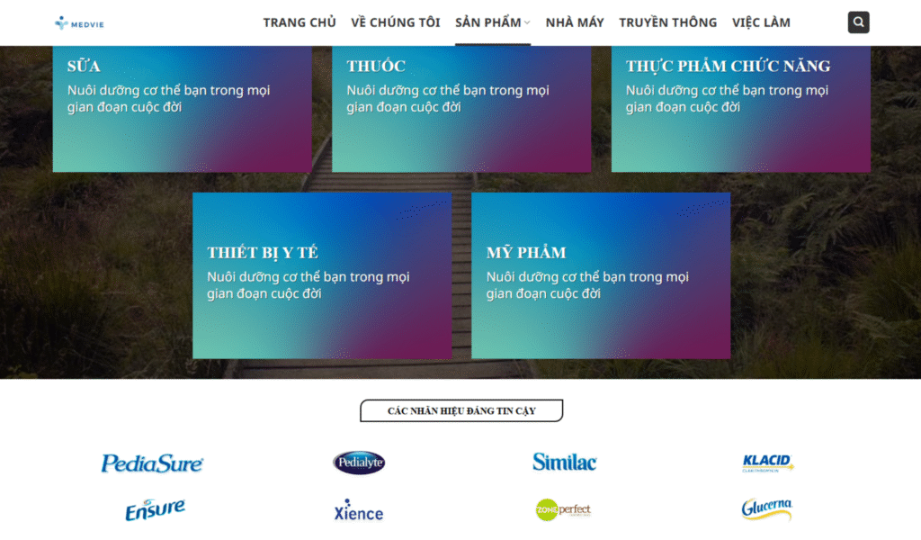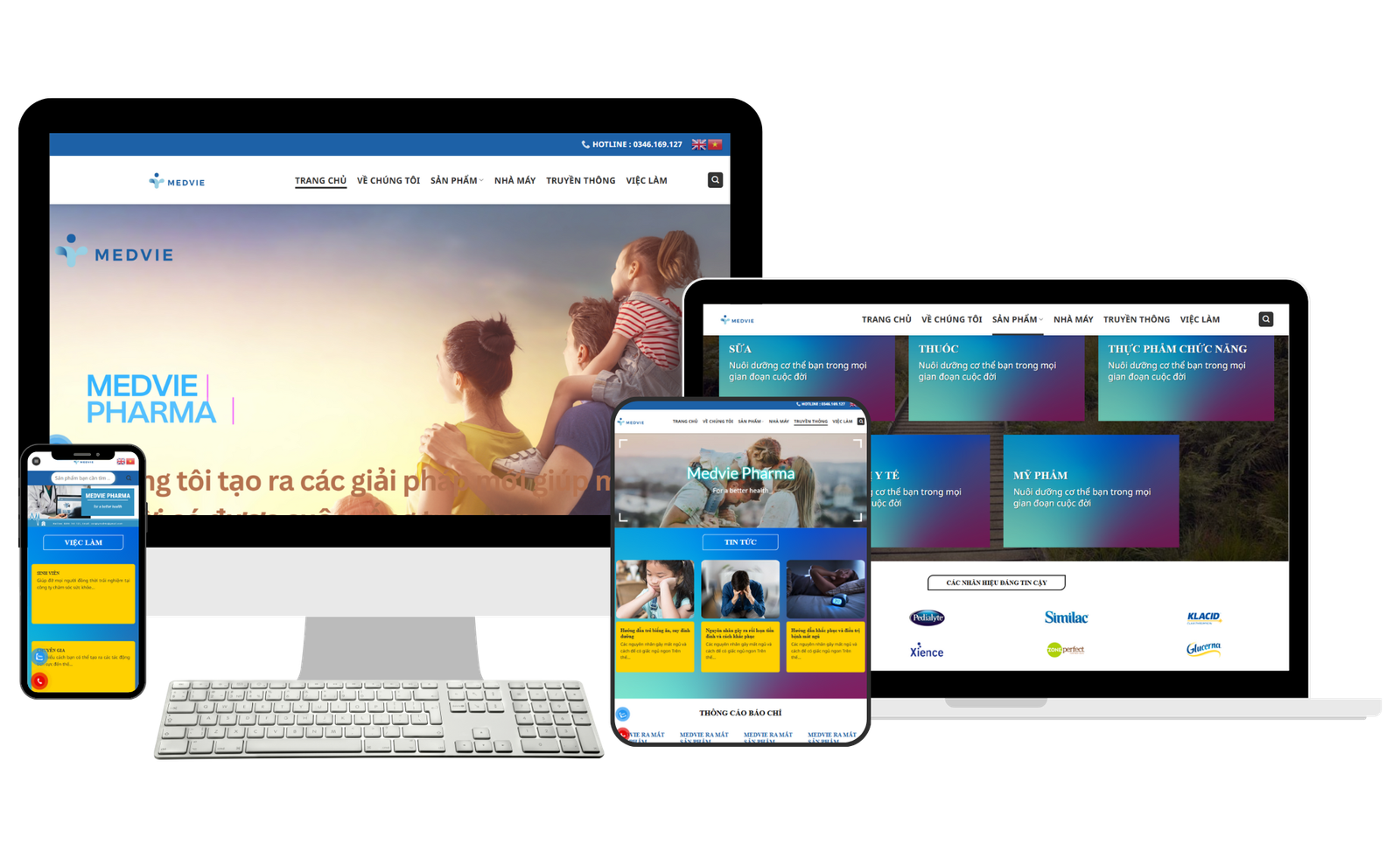 • Khẳng định uy tín trong lĩnh vực chăm sóc sức khỏe: Website thể hiện vị thế của Medvie Pharma là đơn vị cung cấp dược phẩm, thực phẩm chức năng, dinh dưỡng và mỹ phẩm chất lượng tại Việt Nam. Đây là kênh giới thiệu toàn diện các dòng sản phẩm, giúp khách hàng dễ dàng nắm bắt thông tin và lựa chọn giải pháp chăm sóc sức khỏe phù hợp.
