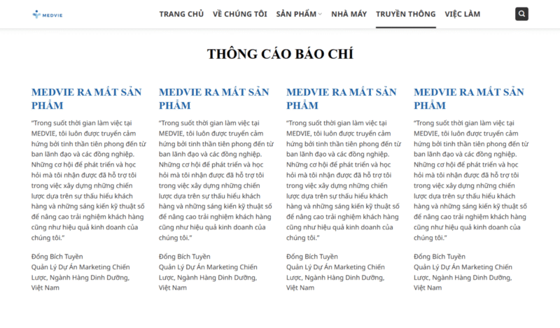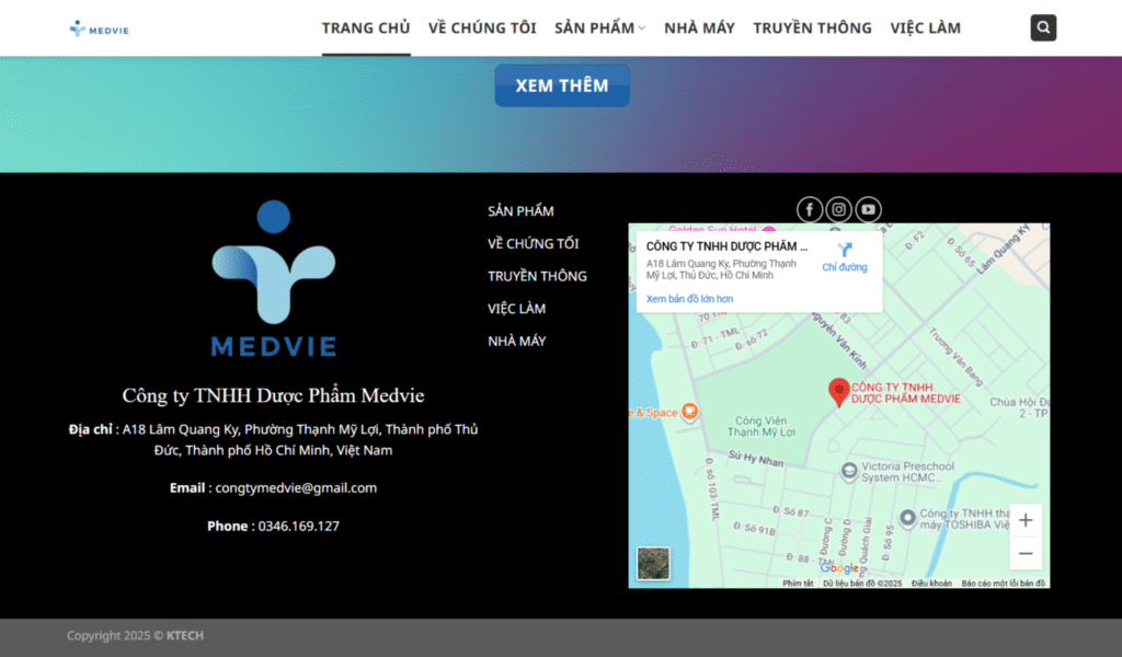 • Nền tảng cung cấp thông tin minh bạch và chuyên nghiệp: Website giúp khách hàng tiếp cận nhanh chóng thông tin về thành phần, công dụng, quy trình sản xuất cũng như cam kết chất lượng của Medvie Pharma.