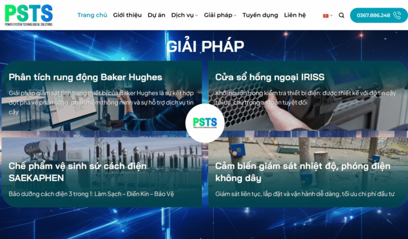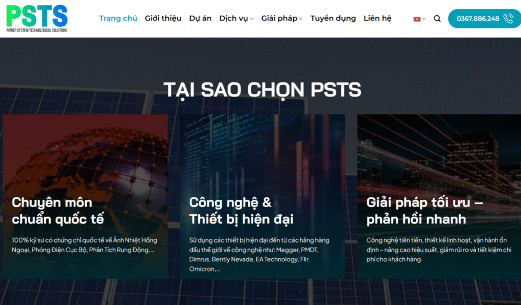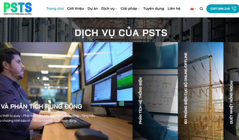 • Đồng thời, website là kênh truyền tải sứ mệnh của PSTS – đảm bảo an toàn, ổn định và tối ưu hiệu suất vận hành cho nhà máy, trạm biến áp và các công trình công nghiệp trên toàn quốc.