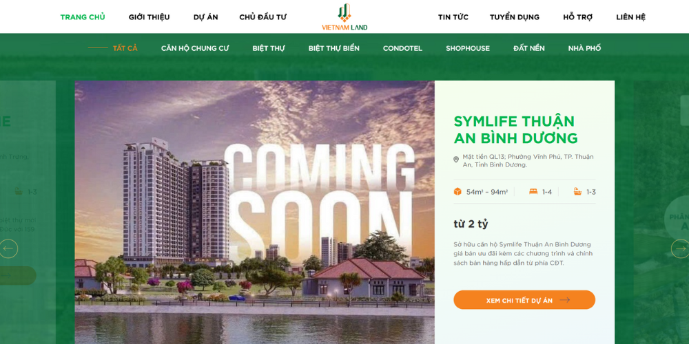 Mẫu website bất động sản Vietnam Land